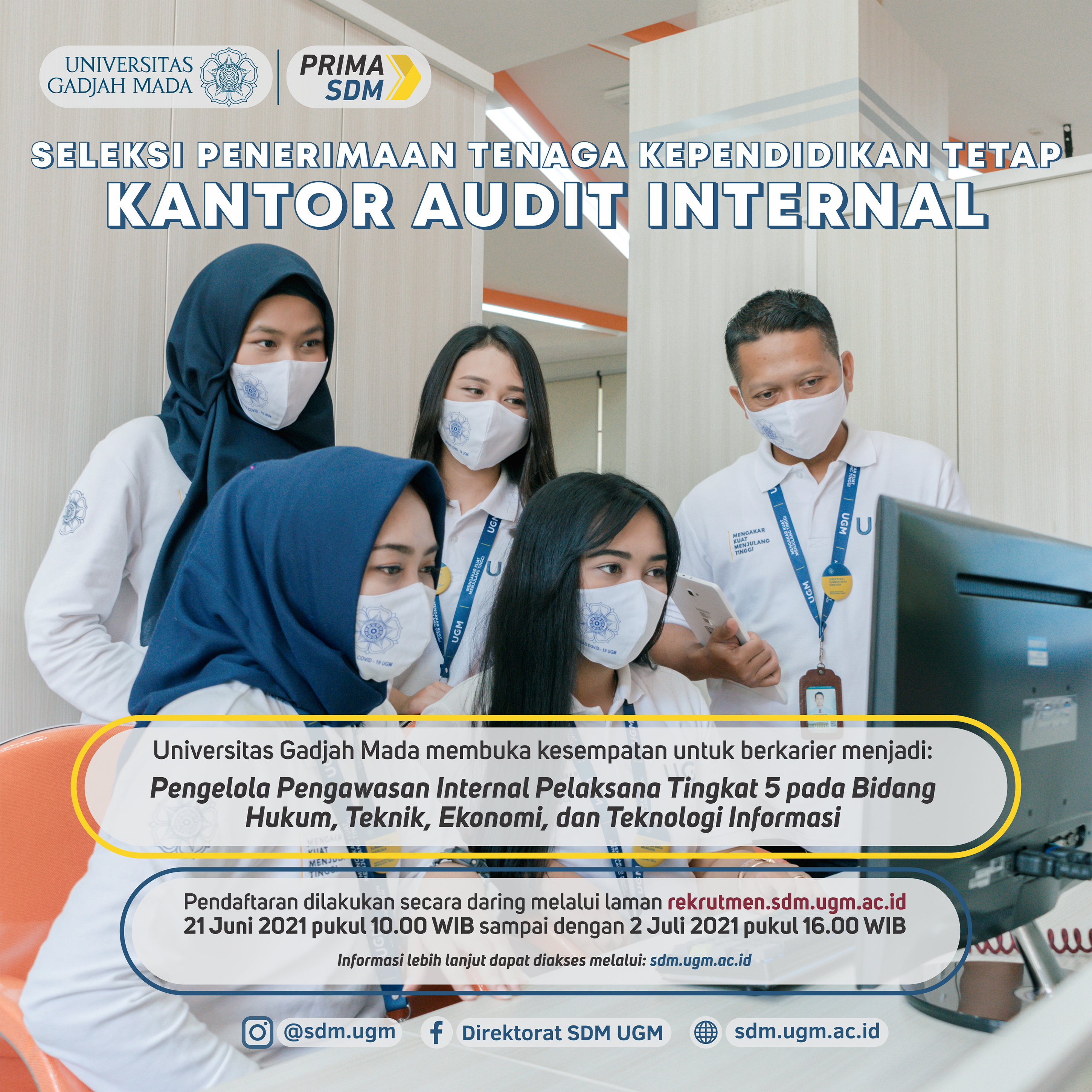 Rekrutmen Auditor Internal Universitas Gadjah Mada 2021 diumumkan melalui website SDM UGM di laman berikut: http://ugm.id/rekrutmenKAIUGM.