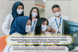 Rekrutmen Auditor Internal Universitas Gadjah Mada 2021 diumumkan melalui website SDM UGM di laman berikut: http://ugm.id/rekrutmenKAIUGM.